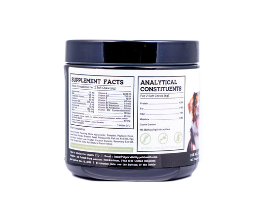 Vigor & Vitality 8 Strain Probiotic Digestive Care For Gut Health, Supplement Dog Chews, Treats 90 Chews (Beef Flavour)Regular price £15.99 GBPRegular priceUnit price per-