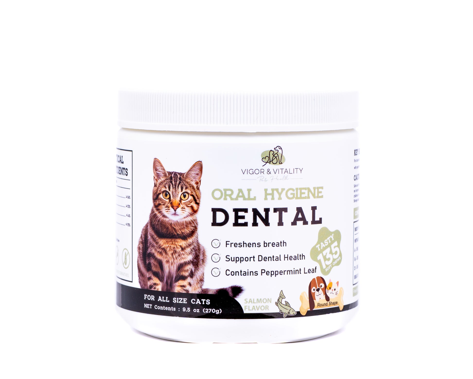 Vigor & Vitality Cat Oral Hygiene Dental Chews For Fresh Breath, Healthy Gums, Overall Dental Hygiene Treats 135 Chews (Salmon Flavour)