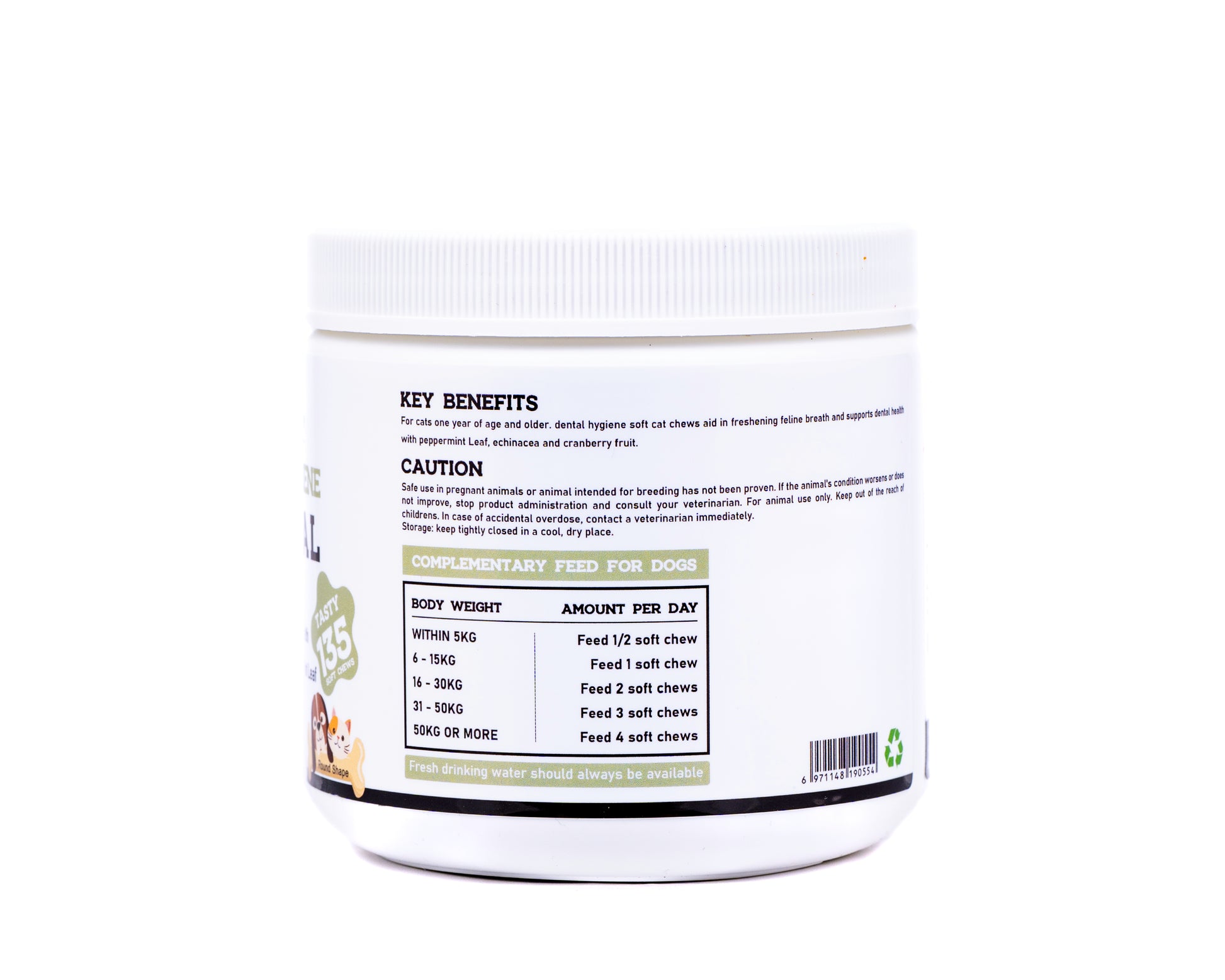 Made with cranberry fruit powder, peppermint leaf, and echinacea, these grain-free chews not only promote dental health but also contribute to your cat’s overall well-being. Soft, easy to chew, and highly digestible, they’re a convenient way to care for your cat’s teeth—without the hassle of brushing!